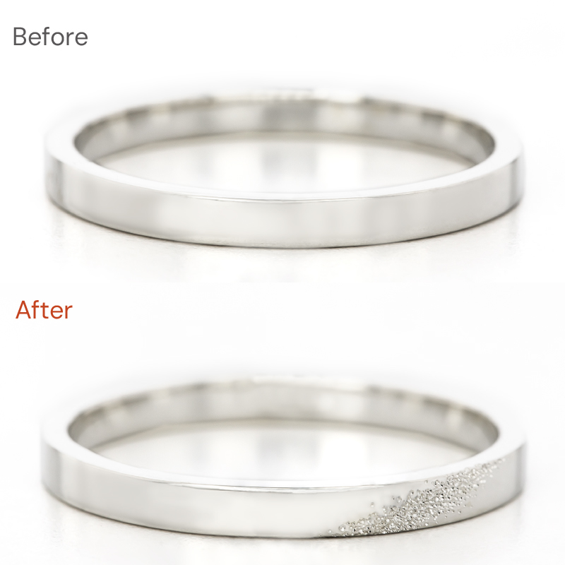 ringramオリジナルのグリッター加工は、指輪の表面に細かい粒子を施し、きらめきを持たせる加工です。