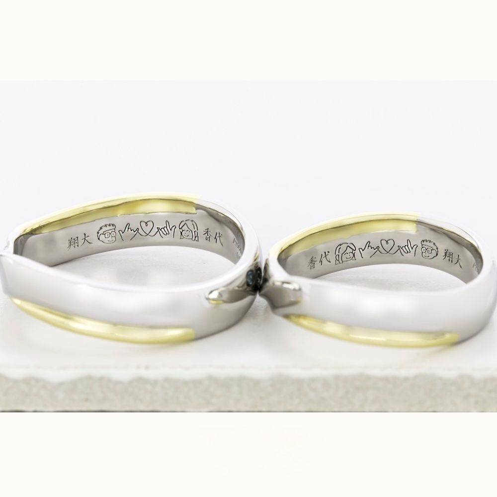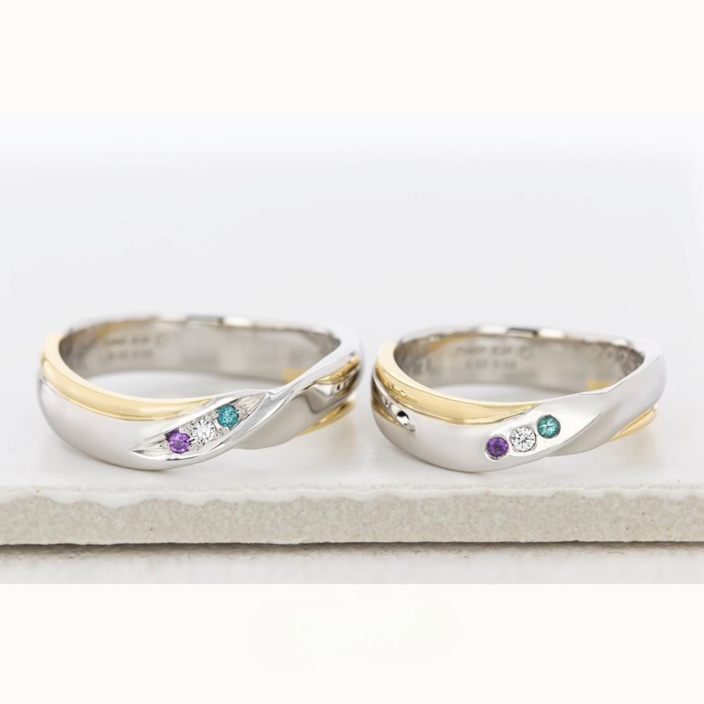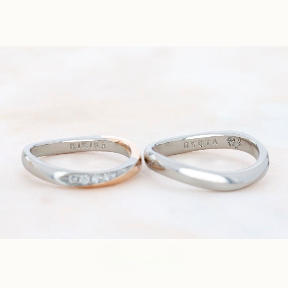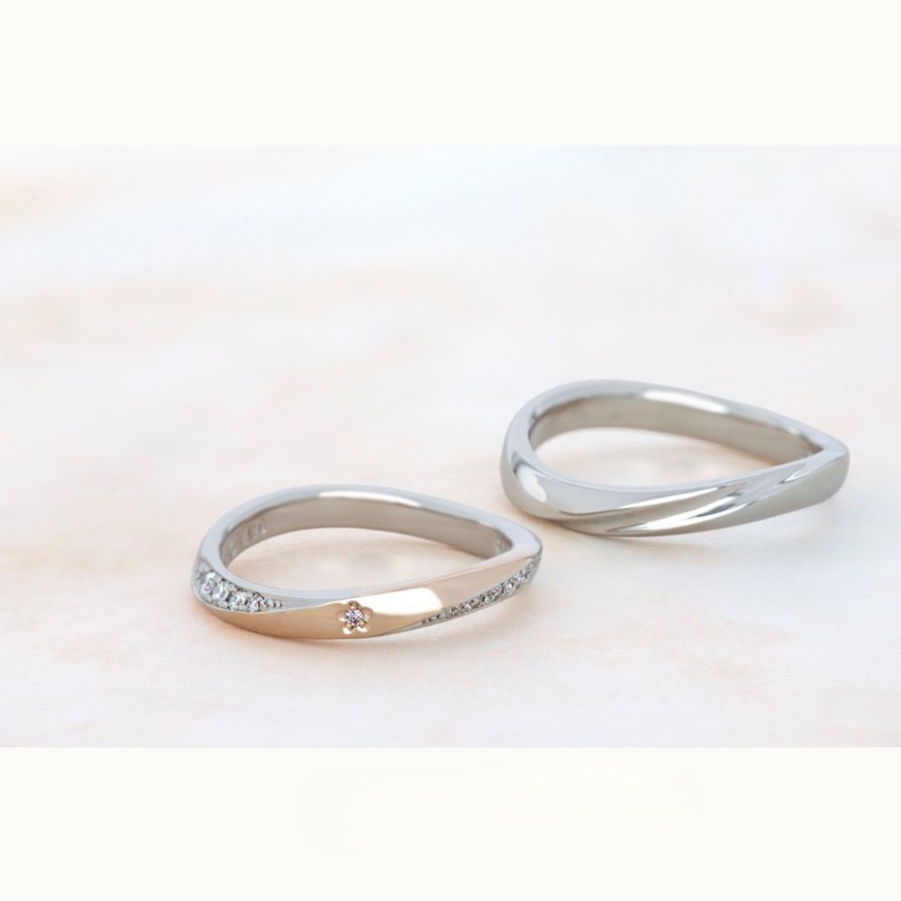 お素材:プラチナ×イエローゴールド。メビウスの輪をモチーフにしたこだわりの指輪。