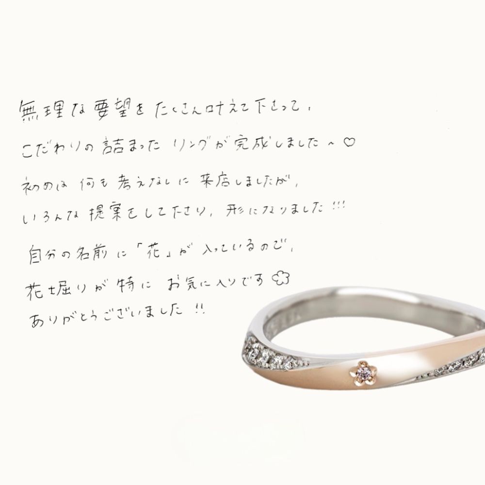 そこで、実際にご制作頂いたお客様の指輪と感想をご紹介致します♪