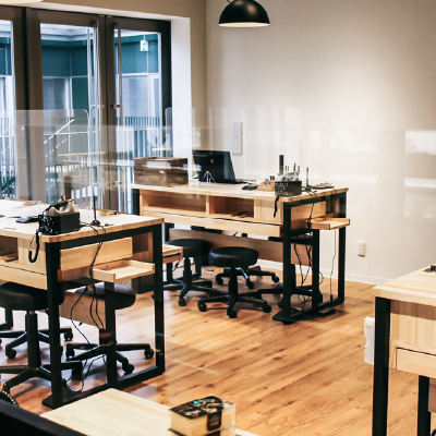 広々とした店内には、手作り作業に没頭できる専用のクラフトスペースを完備。