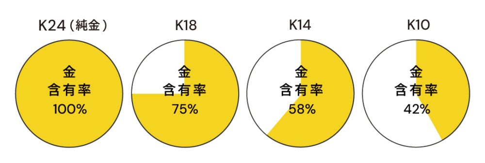 金は「24分率」で表され、数字が大きいほど純度が高くなります。