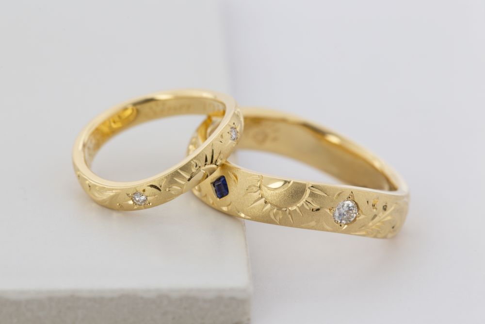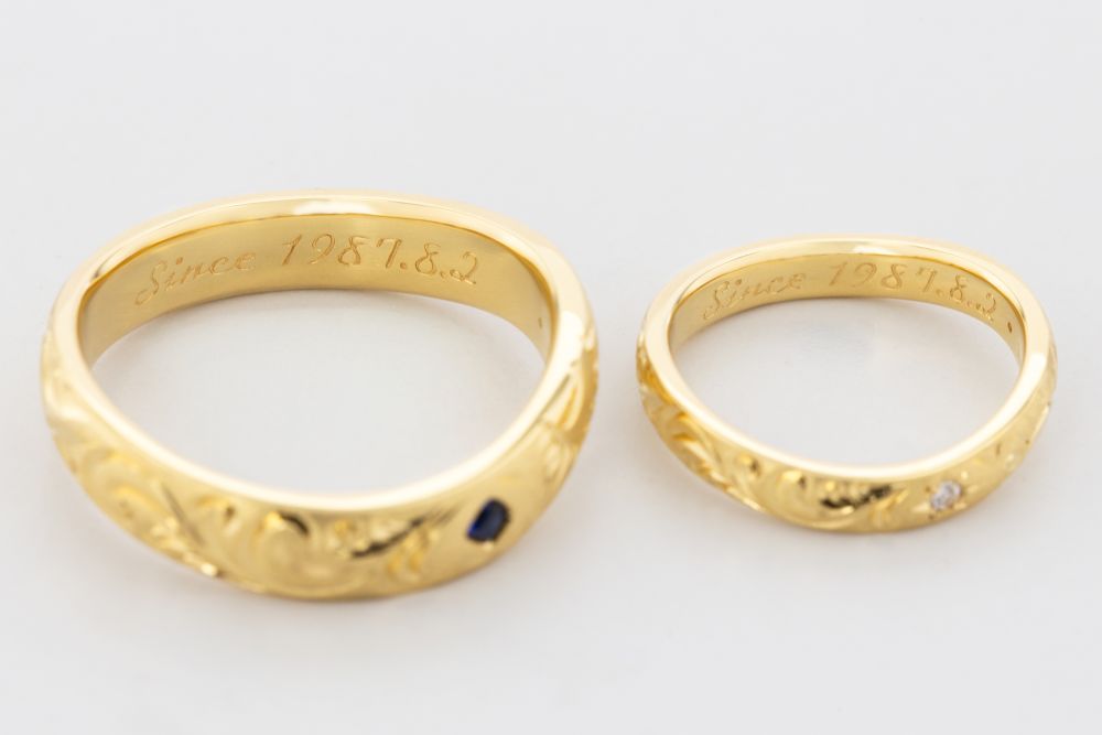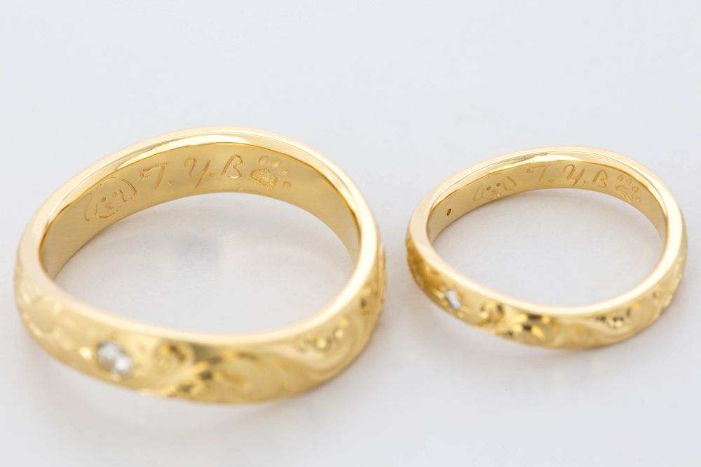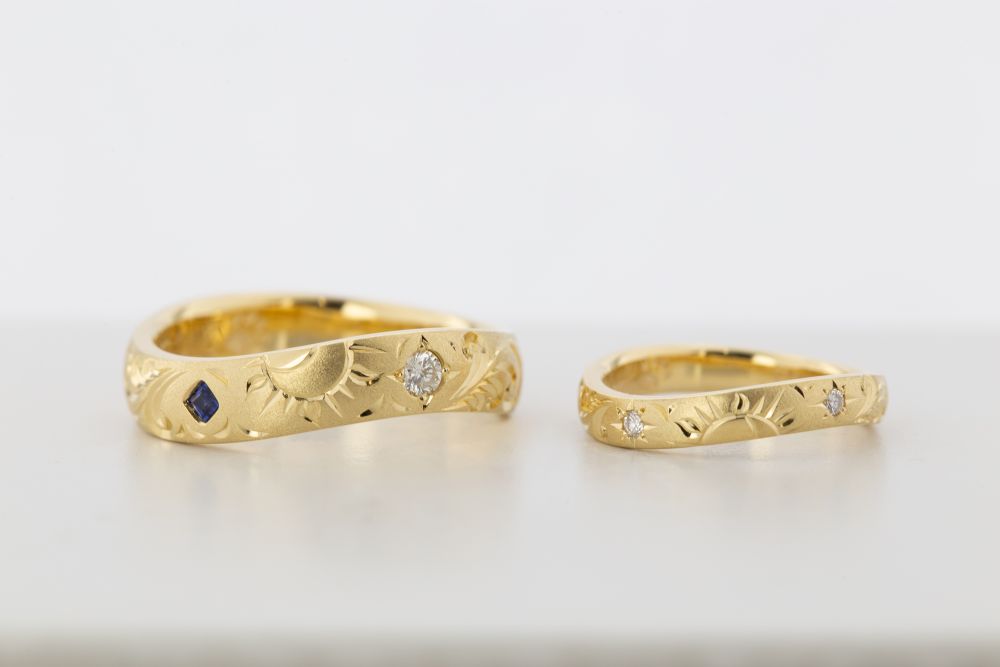 結婚40周年を祝し、奥様の指輪に重なる曲線で仕立てたフルオーダーリング。