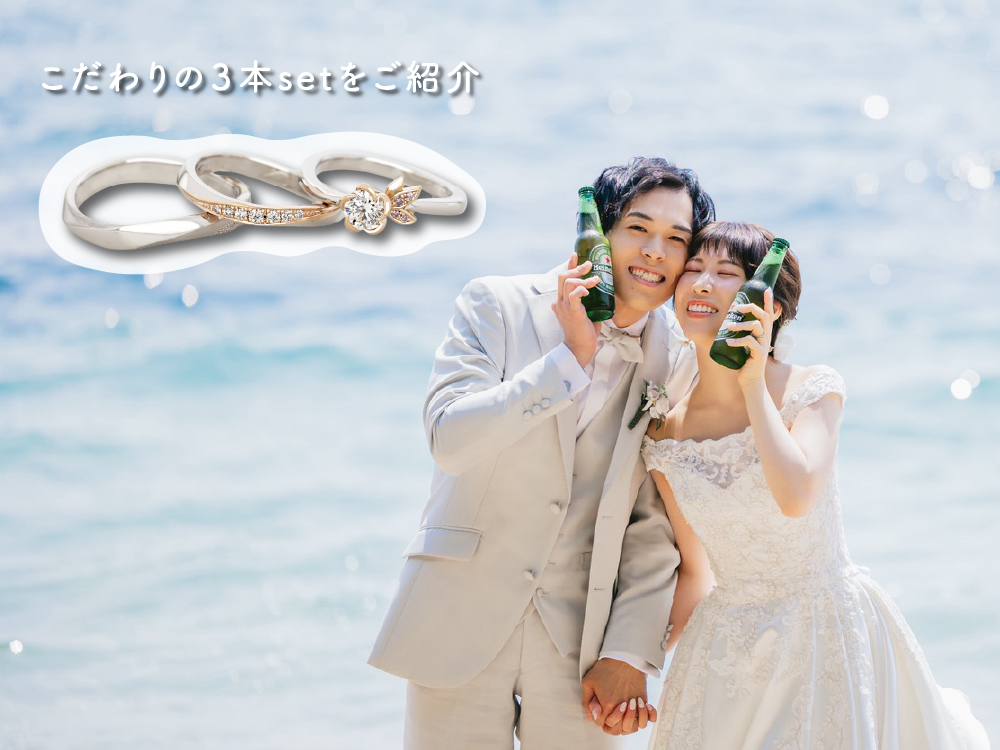 - 一番最初のきっかけは、インスタグラムでたまたま見かけて、とても可愛くて惹かれました。実は、私たちペアリング、婚約指輪、結婚指輪と3回ともringramさんで制作をしているんです。実際に作ってみると、作る過程が楽しく記念に残るのがなにより良かったので、そのあとの婚約指輪も結婚指輪もringramさんで選びました。思い出のお店です!