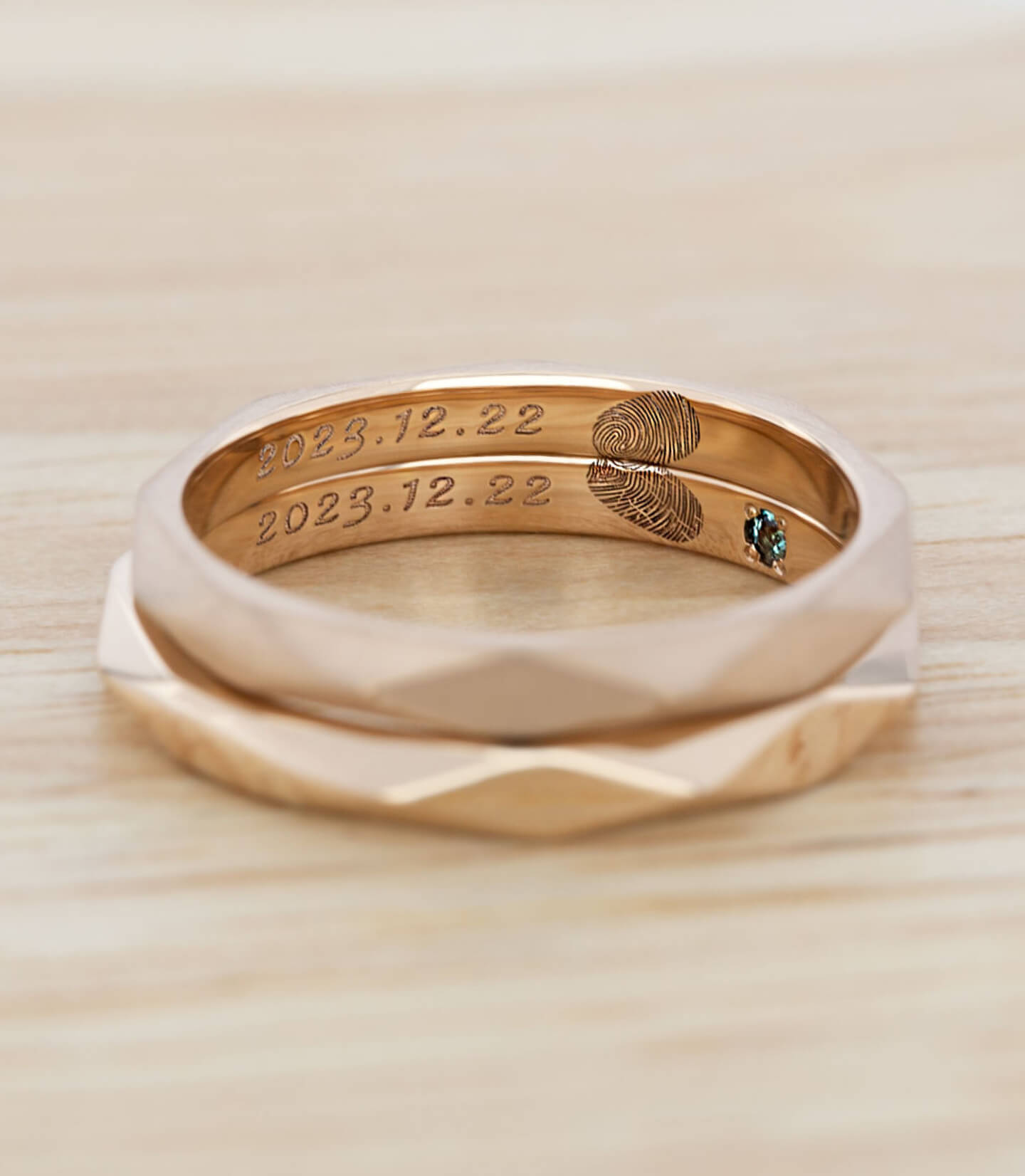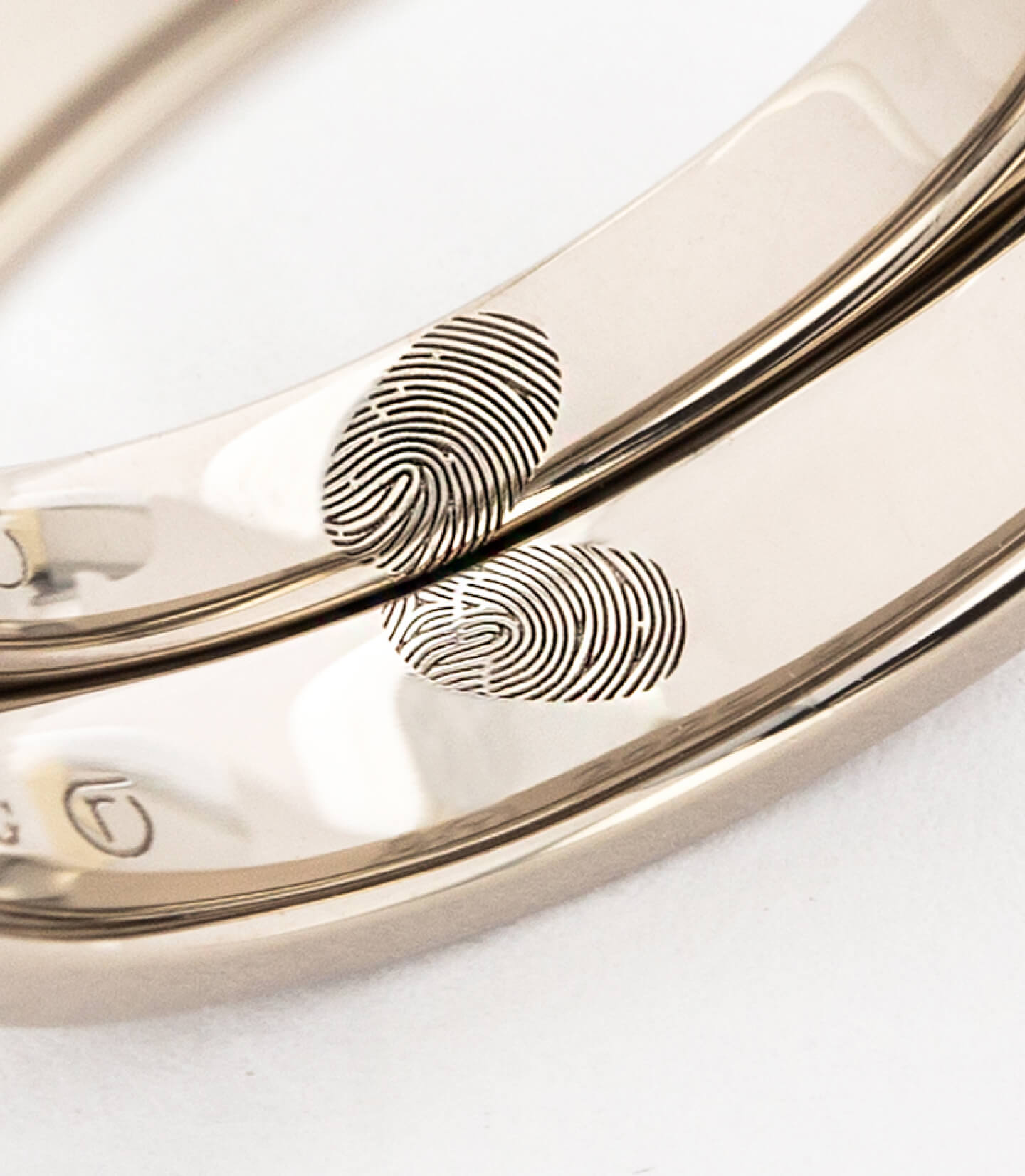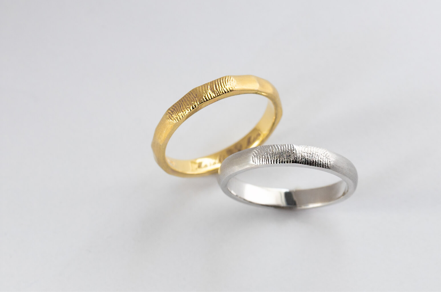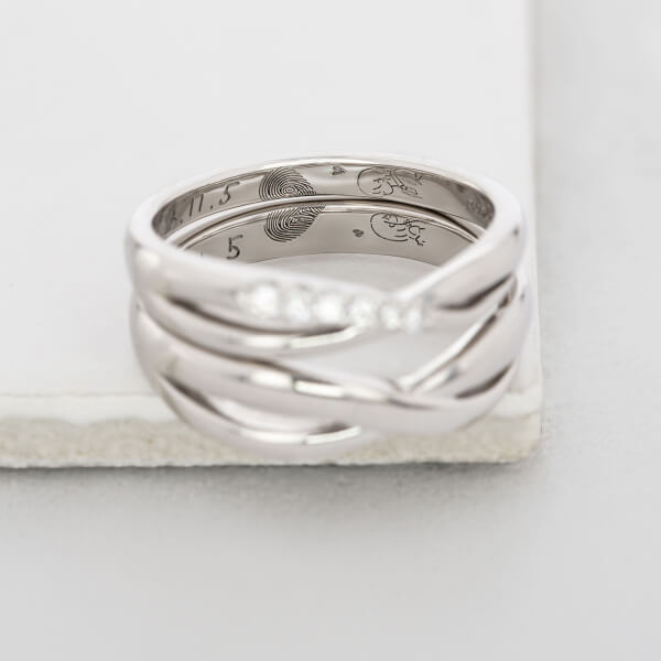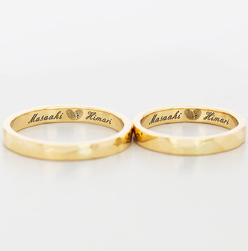 指輪のデザイン自体はシンプルに、でも内側にはこだわりたいと思っていました。 お互いの指紋を記念日と一緒に刻印してもらったのですが、仕上がりの繊細さに驚きました。指紋のラインまで綺麗に再現されています。一見シンプルなのに他にはない指紋デザインがとてもお洒落で、希望通りの指輪に大満足です。
