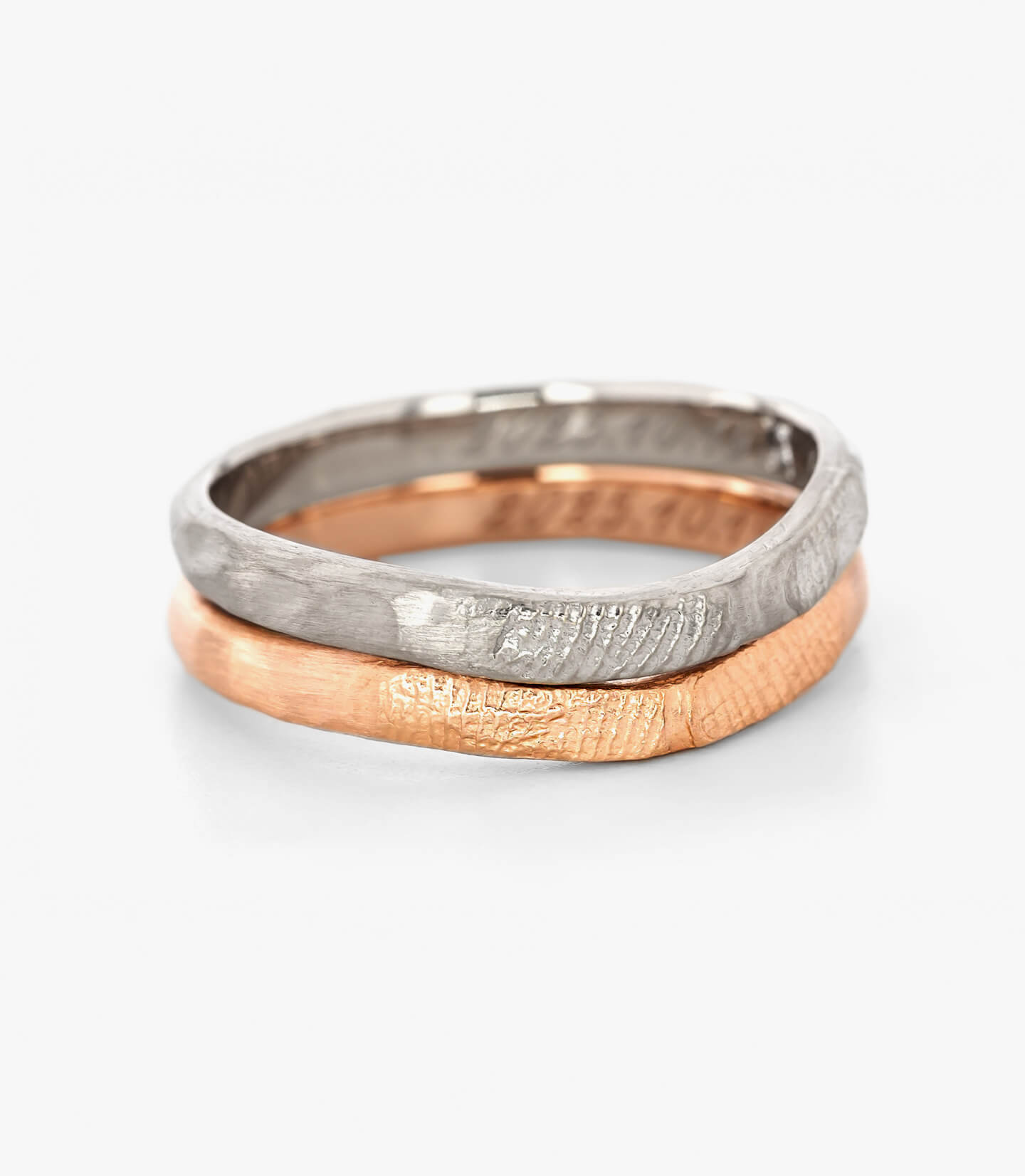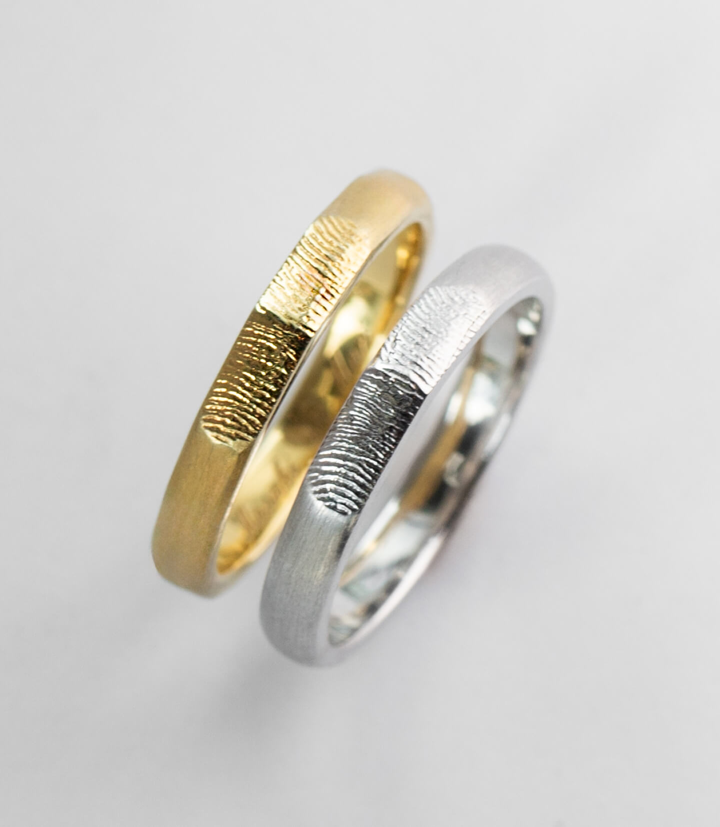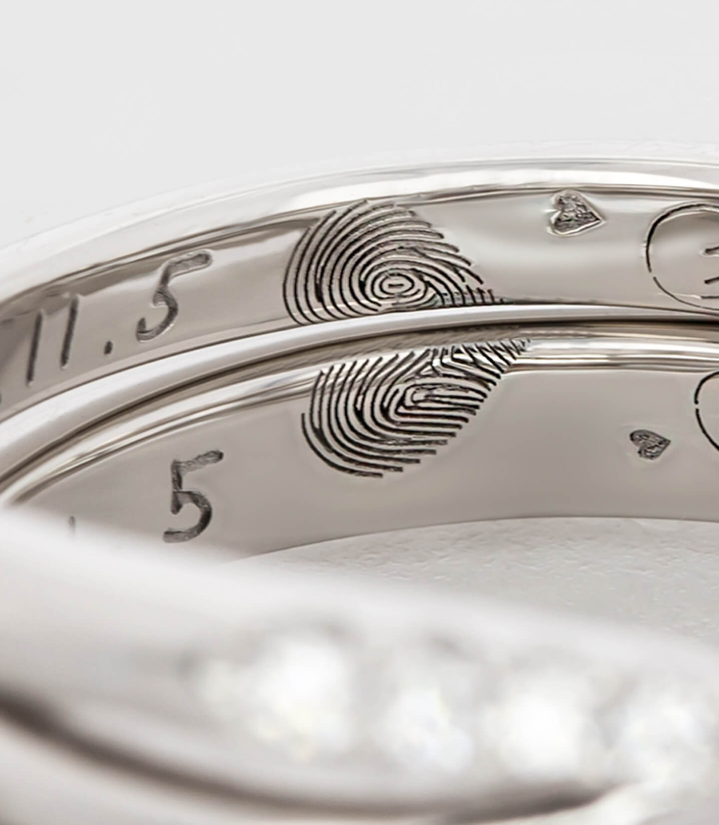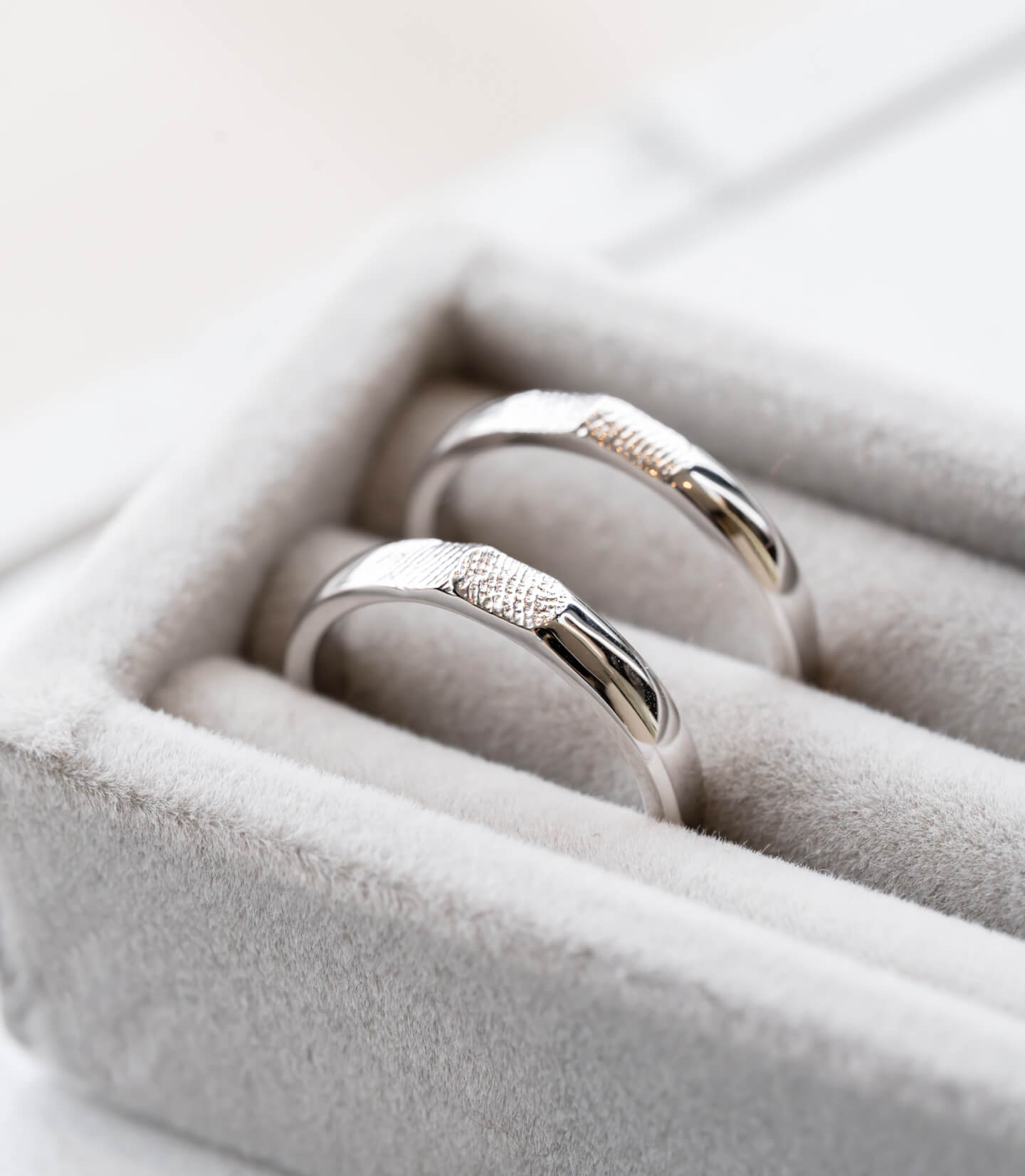指輪のデザイン自体はシンプルに、でも内側にはこだわりたいと思っていました。 お互いの指紋を記念日と一緒に刻印してもらったのですが、仕上がりの繊細さに驚きました。指紋のラインまで綺麗に再現されています。一見シンプルなのに他にはない指紋デザインがとてもお洒落で、希望通りの指輪に大満足です。