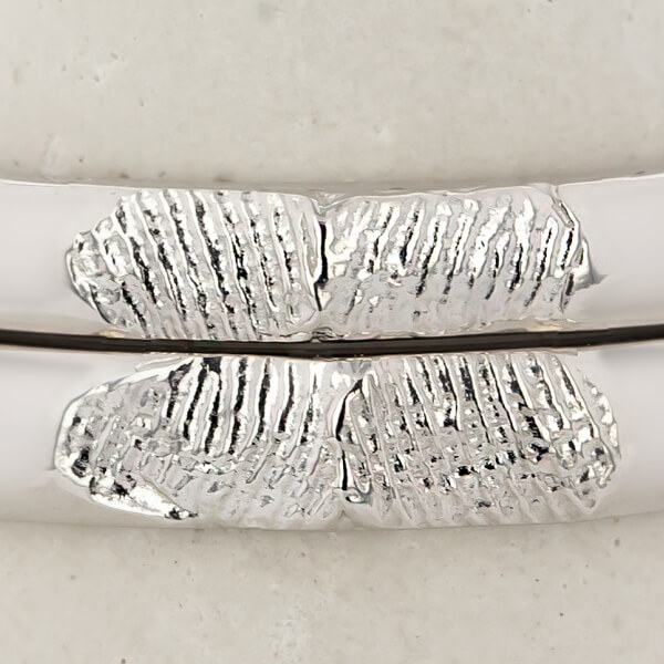 そのWAXを元に金属へと鋳造(ロストワックス製法)することで、指紋の細かな線まで、金属のリングに忠実に再現されます。