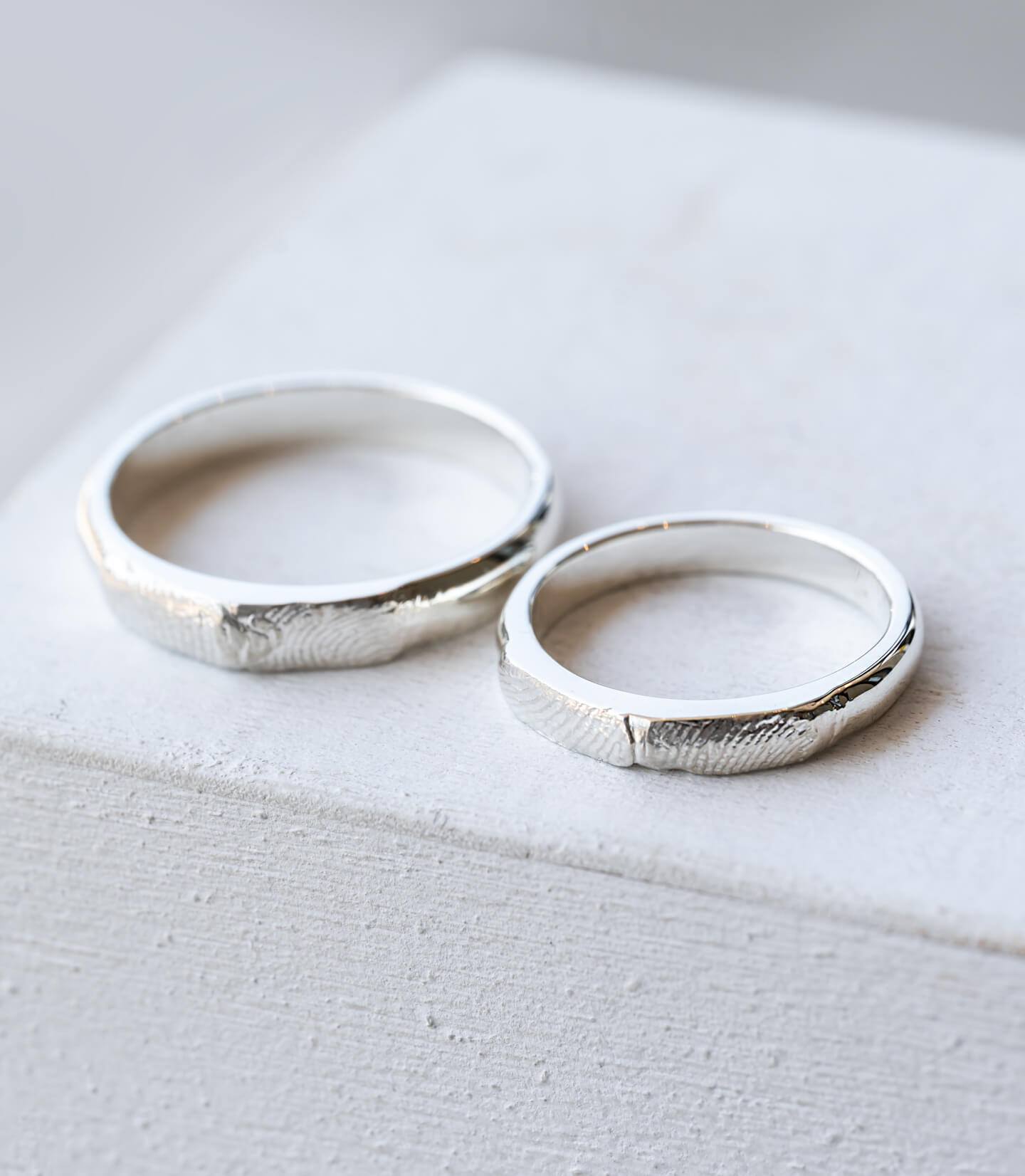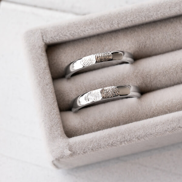 指輪を眺めていると、いつでも妻がそばにいてくれるような温かい気持ちになります。指紋という最も身近な愛の形を、一生大切にしていきます。