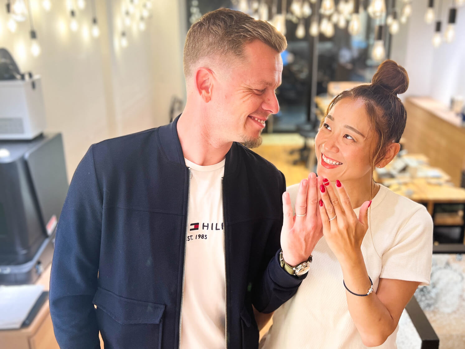実際に自分たちの指紋が刻印された指輪をみた瞬間、手作りならではの愛着と仕上がりに感動しました。内側の刻印なので、ふとした時についつい指輪を外してハートを見てしまいます。